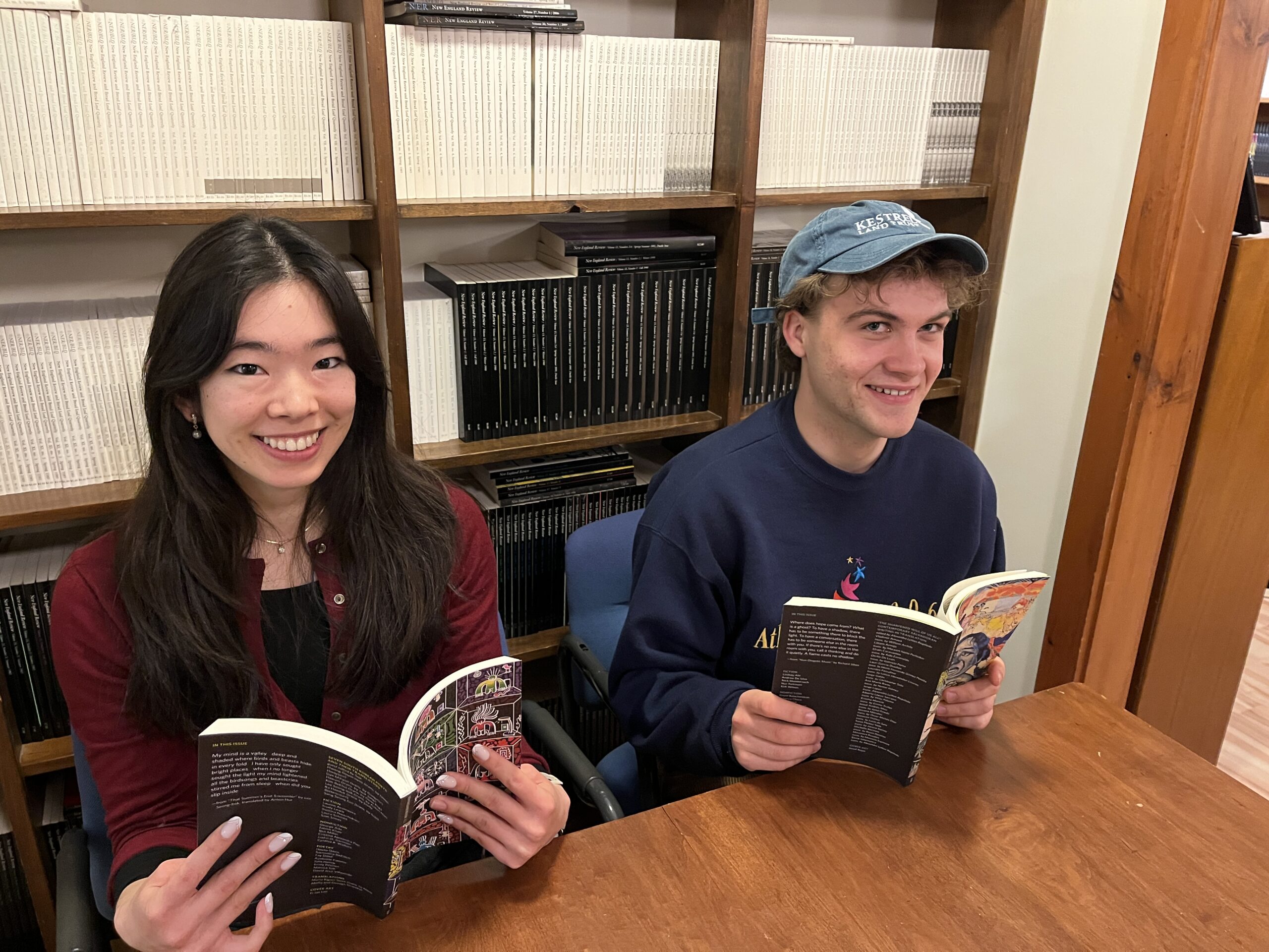 This fall Sydney Alexander and Gus Morrill spent their Monday and Wednesday afternoons in the New England Review office. They read paper submissions in all genres, performed in our special NER Out Loud presentation for President Baucom’s inauguration, conducted research on literary magazine contests, and much more. Here they interview each other for our “Meet the Interns” series.